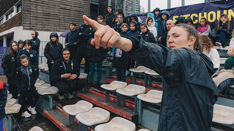 Pour les clubs, cet entraînement commenté offre aussi l’occasion de passer des messages de bienveillance et de tolérance auprès des plus jeunes comme l’explique Stéphanie Andreu-Seigne, sage-femme au Centre de santé sexuelle du Conseil départemental. La professionnelle de santé intervient régulièrement pour faire de la prévention et assurer le suivi gynécologique des joueuses de l’équipe féminine du Téfécé. Ce jour-là, elle sensibilise les adolescentes sur l'importance d'équipements adaptés, comme les brassières de sport, essentiels pour concilier confort et performance.